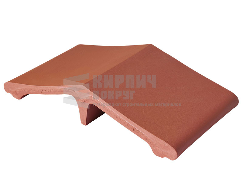Клинкерный добор "Рубиновый красный" - 01, Ruby-red для аналогичного колпака (оголовка) на забор производства King Klinker, находящегося в Польше, имеет размер 445x250x90 мм, цвет красный. Используется для удлинения обычных колпаков в ограждении или заборе.